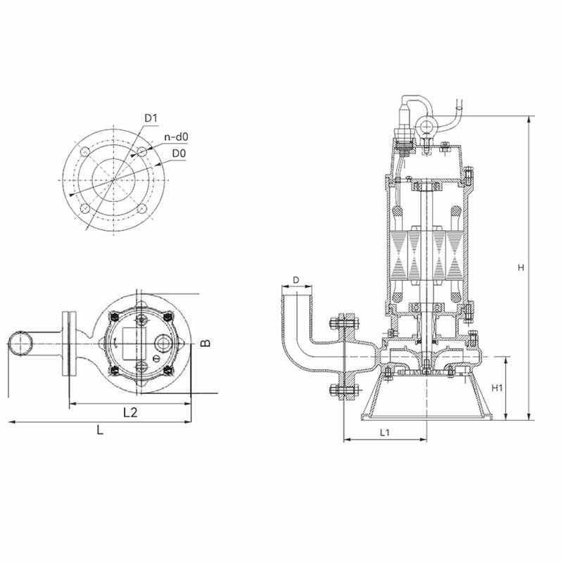 | 5 | 65WQ(D)25-15-2.2SQG | 25 | 15 | 2.2 | 220/380 | 65 | 2860/2900 | 400 | 172 | 282 | 220 | 537 | 109 | Φ65 | Φ130 | 4-Φ14 | Φ160 |